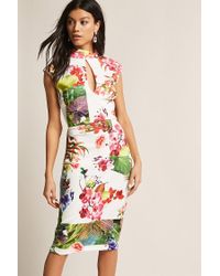 Forever 21 Synthetic Cutout Floral Print Bodycon Dress In Ivory White Lyst